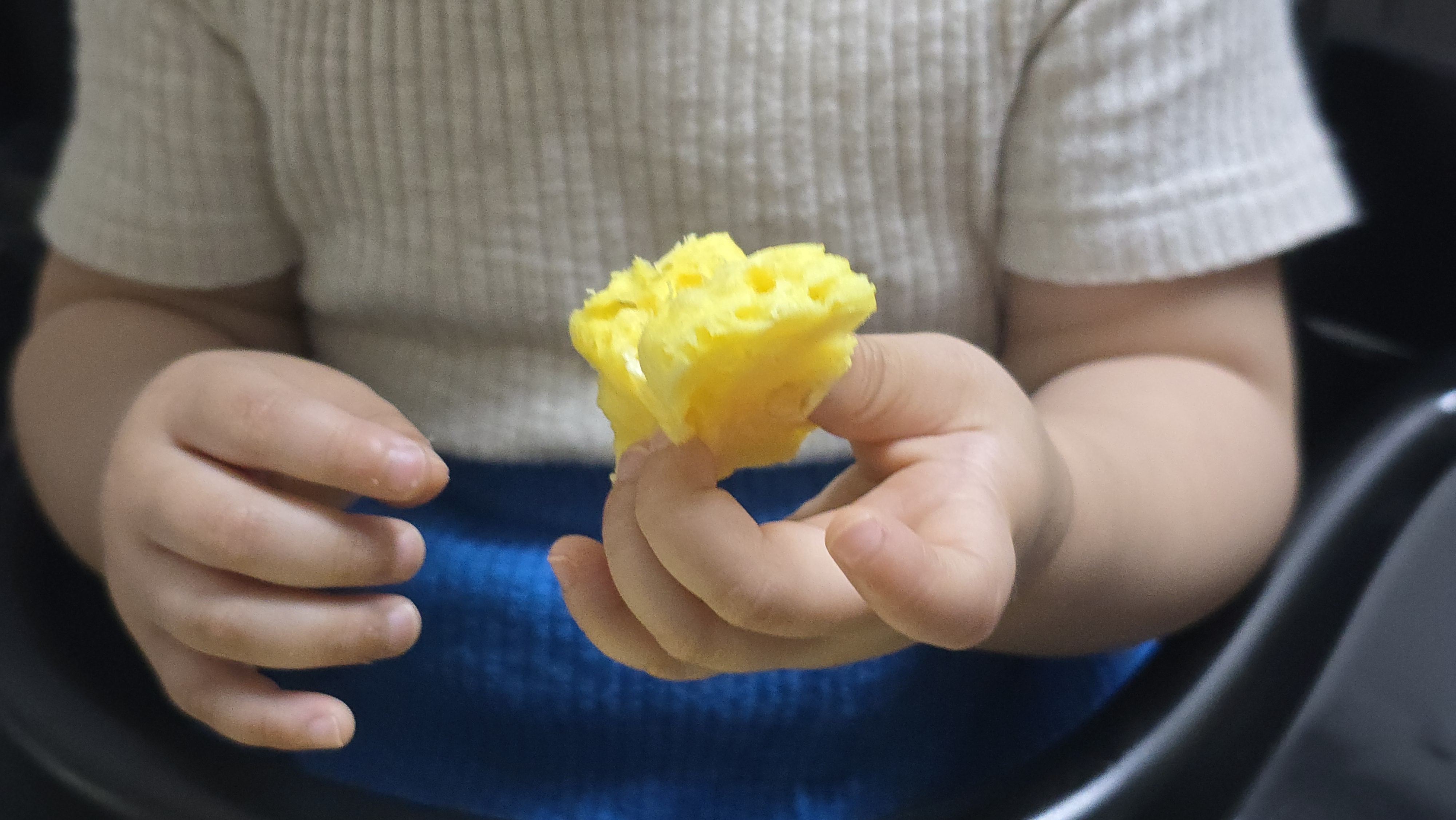 이건 15개월 서윤이가 손으로 집어먹기 딱 좋은 촉감 간식이에요!