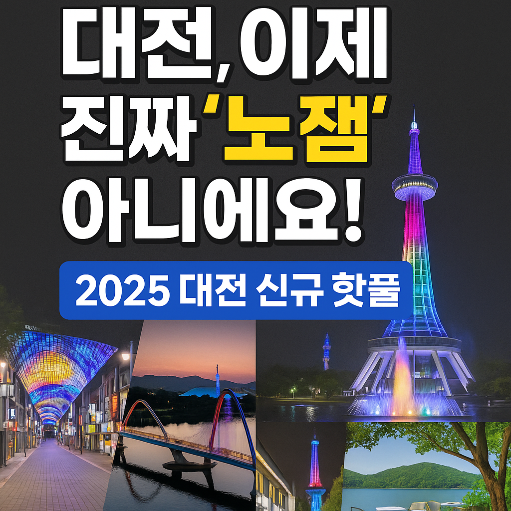 미디어아트가 빛나는 야경, 살아있는 구도심의 감성, 호수와 숲이 만나는 자연, 그리고 신상 카페의 향기까지. 2025년 대전은 가족·연인·친구 모두가 만족할 선택지가 풍성합니다. 이번 주말, 바로 대전으로 떠나볼까요?