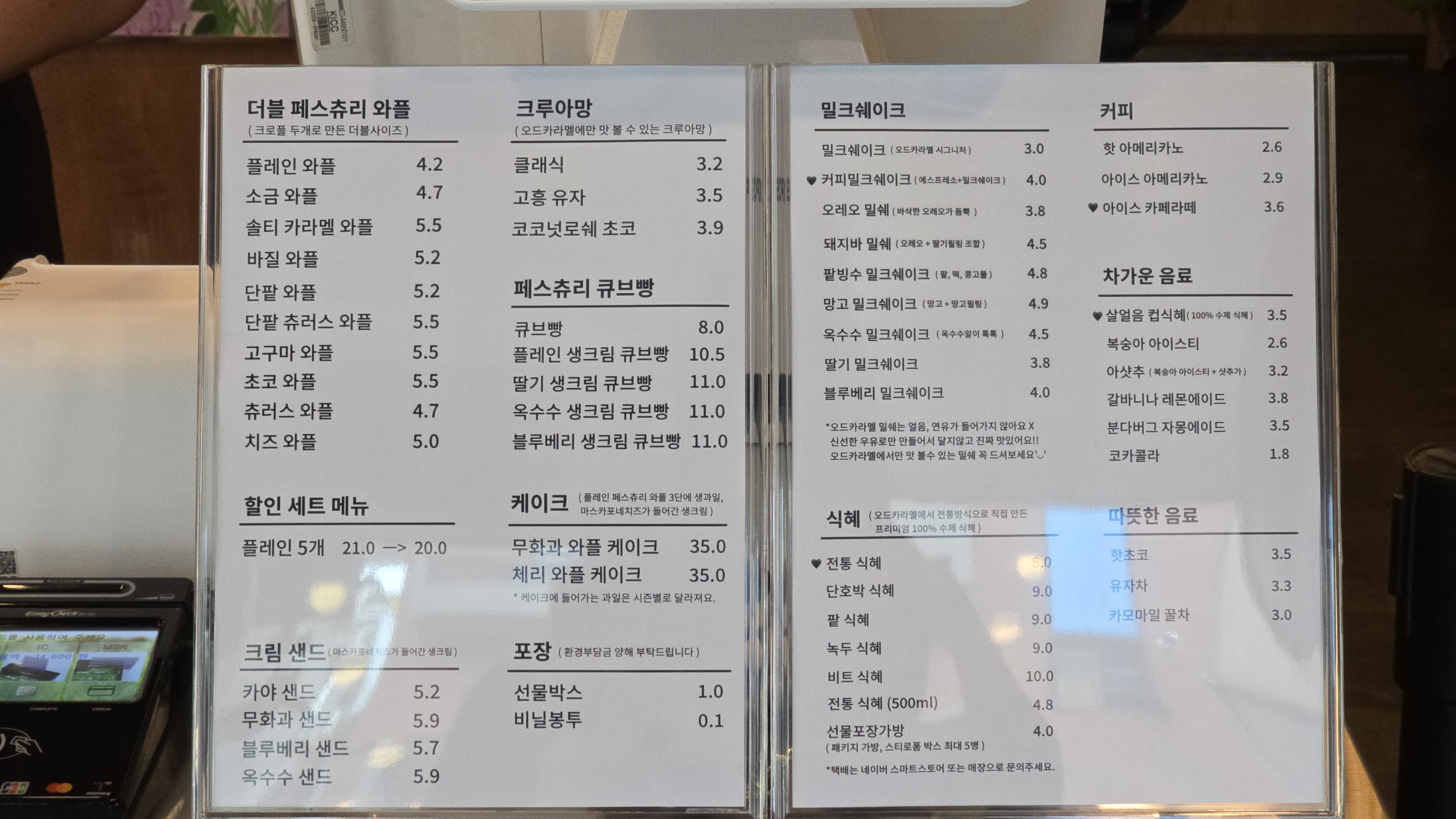 오드카라멜이 특별한 이유! 바로 수제 식혜가 있다는 점이에요. 달콤하지만 전혀 부담스럽지 않고, 입안에서 깔끔하게 마무리돼요.